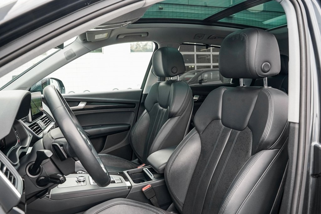 Q5 Prestige with Warm Weather package (Sport Seat both front seats identical with cool ventilation). Riding on air. There is no other way to put it. The sport seats difference other than cooling is “wings” that hold your butt and back in place, a 24 position electric adjustment on BOTH identical front seats with thigh support extenders, excellent for a couple with very bad backs. Power: watch out for fishtailing as you can feel G forces when accelerating, if you want. When researching a replacement for our sloppy 2017 Pilot I noticed most owners of other new vehicles in the south were complaining about AC unable to keep up with the Florida, Texas and desert heats. No problem here, the Q5 has more cool air than needed here at 5200’ in the sunny July southwest desert. Instrumentation is terrific with heads up display, maps and routing directly in front of the driver. (What is more ridiculous than the cars that put the map in the center stack and aim it straight to the rear of the car? Who is sitting on the shift to look forward at the map?) Moving on, the interior materials scream quality. Plenty of rear legroom for a knee replacement patient and headroom not a problem anywhere. Rear seats recline a couple inches. Owners manual very well written with detail. You can spend an evening laughing hysterically at the index though. Looking to program the garage door opener? Look in a subcategory under “O”, “Open and Close”! It goes on, and kept us looking up things just to laugh at where they are. Summarizing: most comfortable luxurious road rocket I’ve ever owned. - 5.0